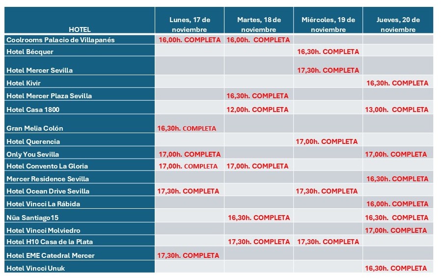 Hotel Only You Sevilla 17 de noviembre 11,00h.COMPLETA